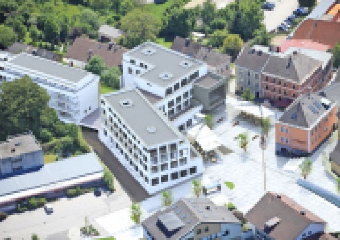 Einen komplett neuen Ortskern für die Gemeinde St. Martin im Mühlviertel errichtete das Architekturbüro Fahrner aus Bad Mühllacken, Österreich, das auch als Generalunternehmer und Bauträger fungierte. Der Gebäudekomplex ist im Niedrigstenergiestandard errichtet und wird mit Luft-Split-Wärmepumpen von Ochsner beheizt.