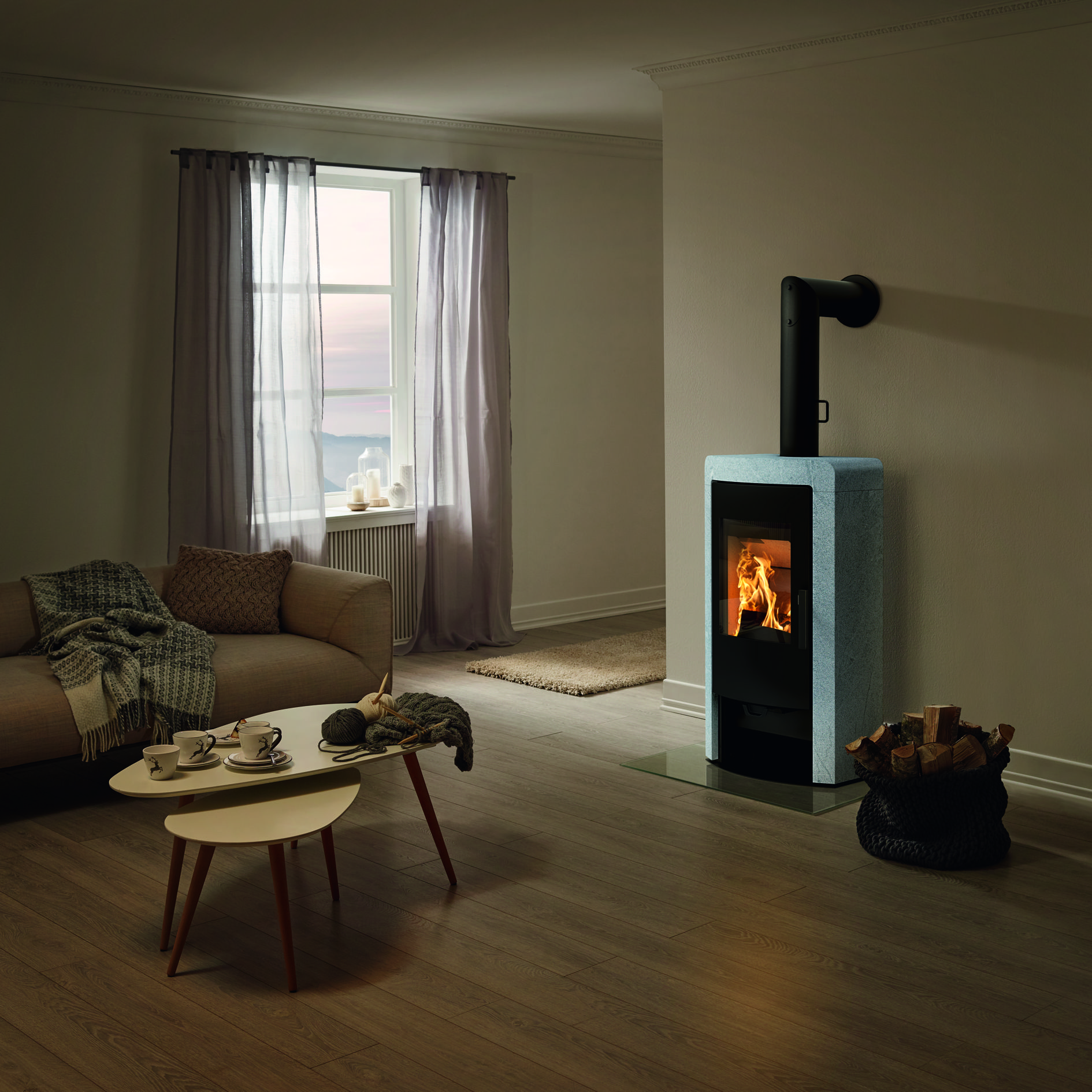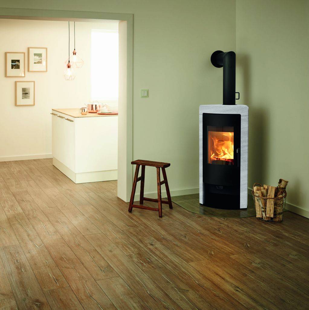 Der Kaminofen Forma zeigt sich in klarer geometrischer Form und mit einer Glasscheibe über Eck, die das Feuer von zwei Seiten einsehbar macht. Mit seiner schlanken Silhouette setzt Rika Akzente im Raum und macht auch als Ecklösung eine gute Figur.