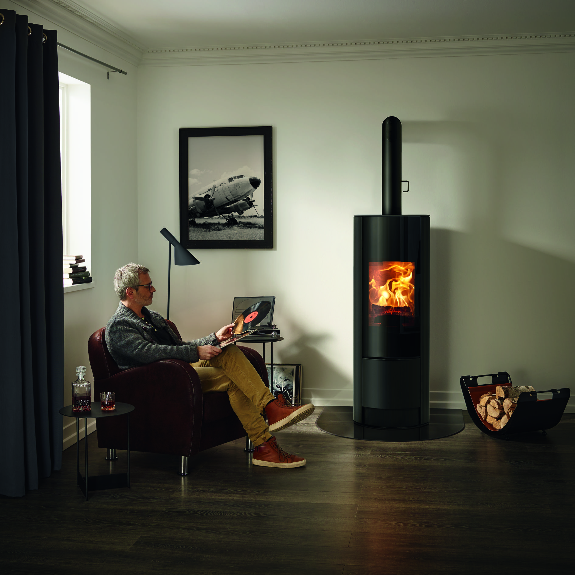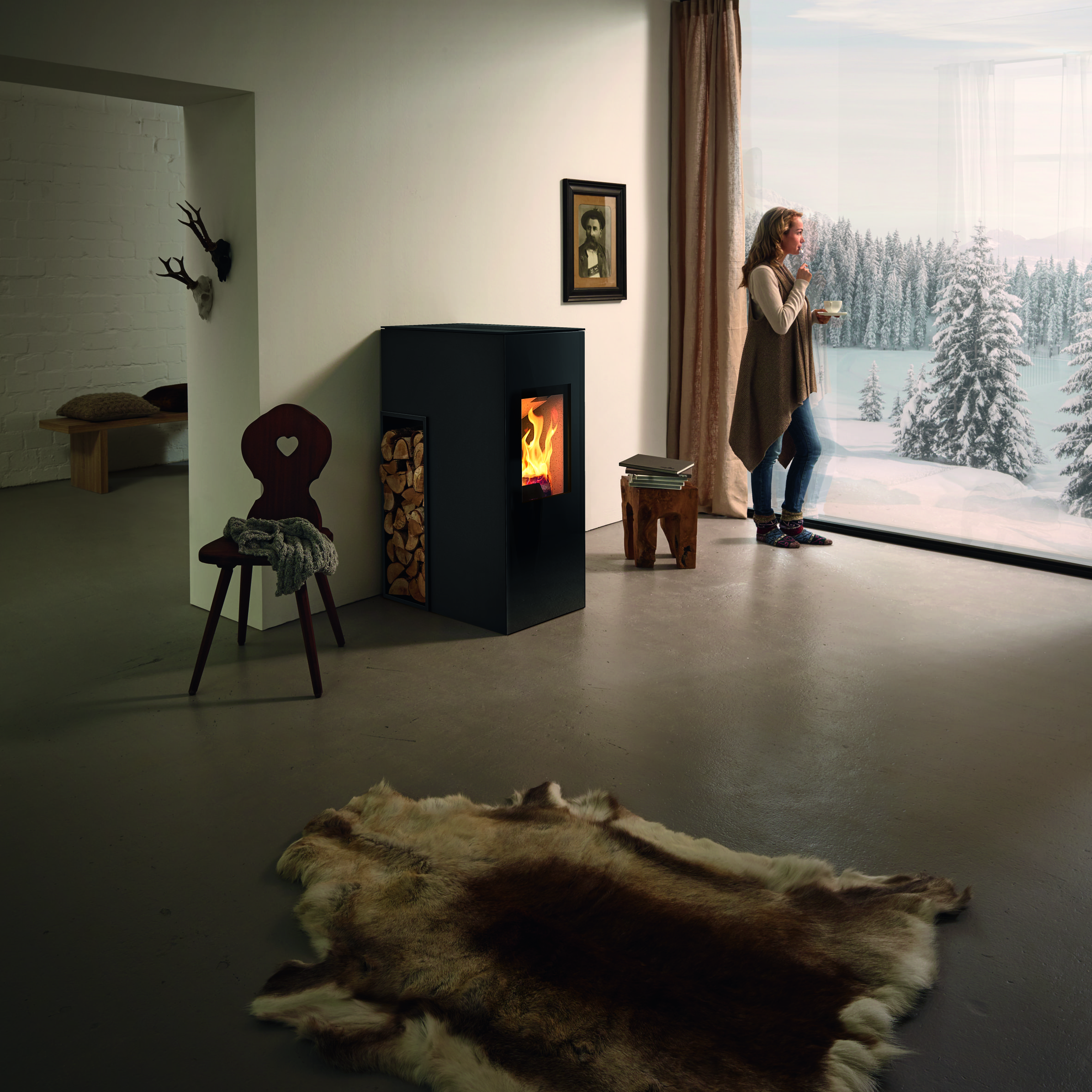 Die Konzentration aufs Wesentliche kennzeichnet das klare Design des Rika Kaminofens Look. Mit Fußvarianten in Aluminiumguss und Stahl oder Sockel in Holz und trendigem Beton bietet er Gestaltungsvielfalt für unterschiedliche Einrichtungsstile von klassisch bis Avantgarde und für Kunden von 18 bis 80. Optional ist eine Kaminbank erhältlich.